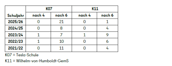 Durch die geplanten Umwidmungen von Grundschulen in Gemeinschaftsschulen sind bis zum Schuljahr 2028/29 zwei neue Gemeinschaftsschulen geplant.